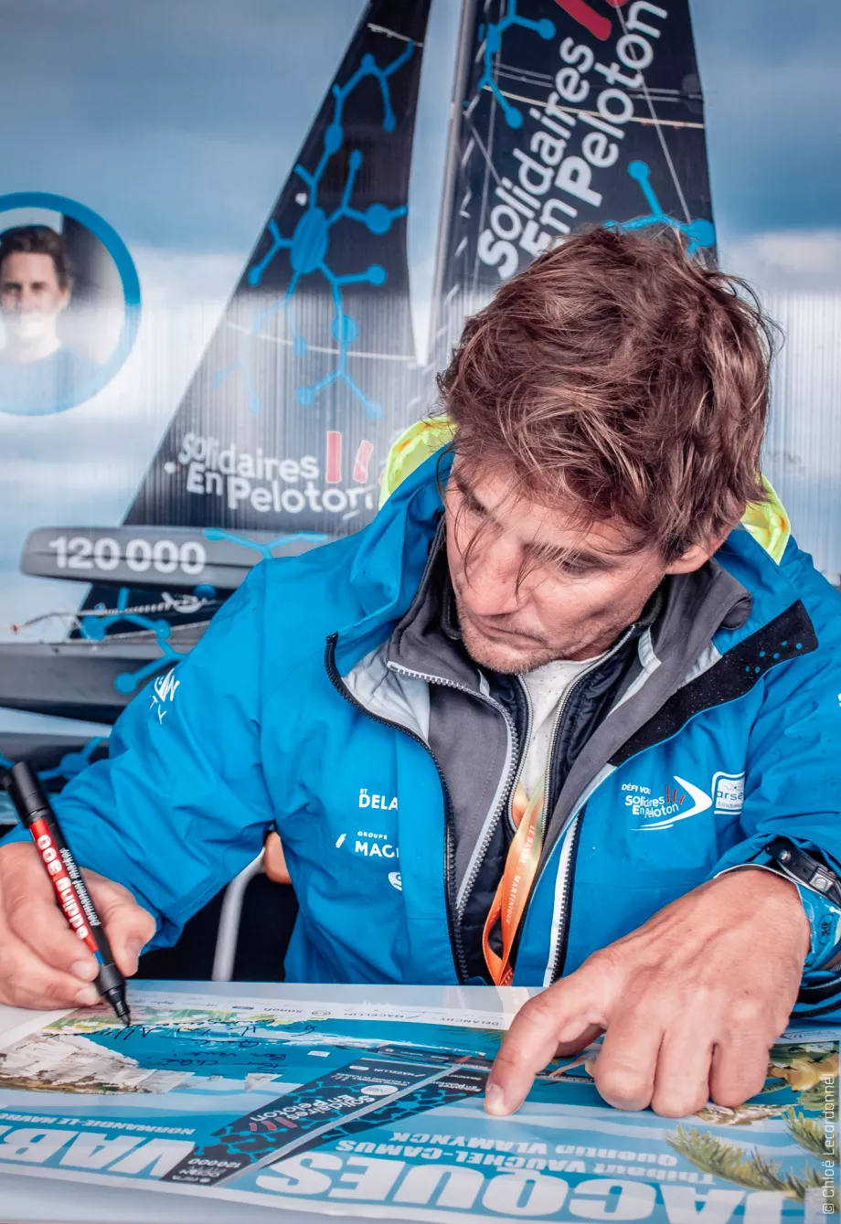 En 2012, il s’associe à la Fondation ARSEP — devenue aujourd’hui France Sclérose En Plaques — pour créer le Défi Voile Solidaires En Peloton et donner un sens plus profond à ses traversées : faire connaître la sclérose en plaques et soutenir la recherche.