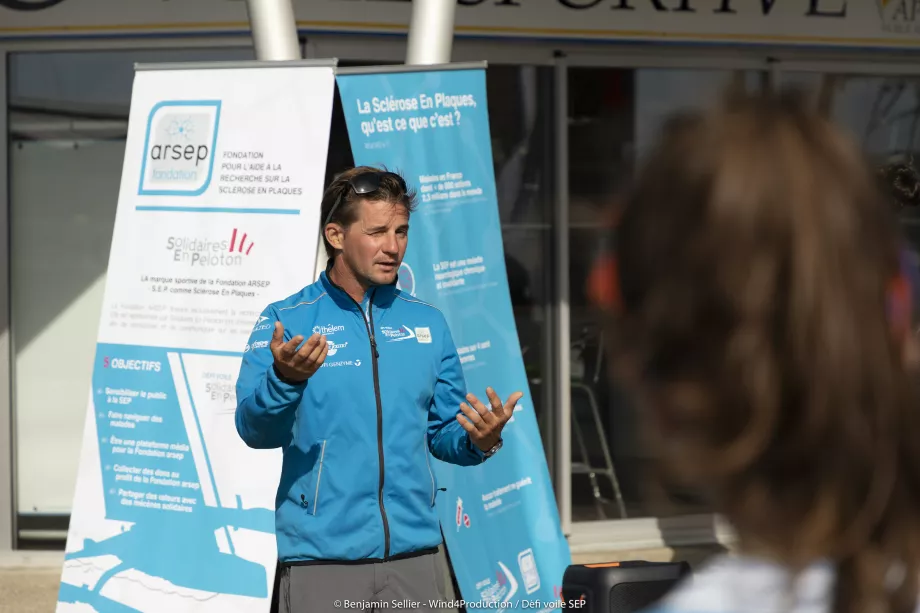 En 2012, il s’associe à la Fondation ARSEP — devenue aujourd’hui France Sclérose En Plaques — pour créer le Défi Voile Solidaires En Peloton et donner un sens plus profond à ses traversées : faire connaître la sclérose en plaques et soutenir la recherche.